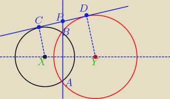 Podstawka: Prosta k jest styczna do dwóch okręgów przecinających się w punktach A i B. Wykaż, że prosta AB