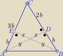 poprowadzono wysokość, która przecięła odcinek AC w punkcie E, takim, że |AE|: |EC| = 1: 2.